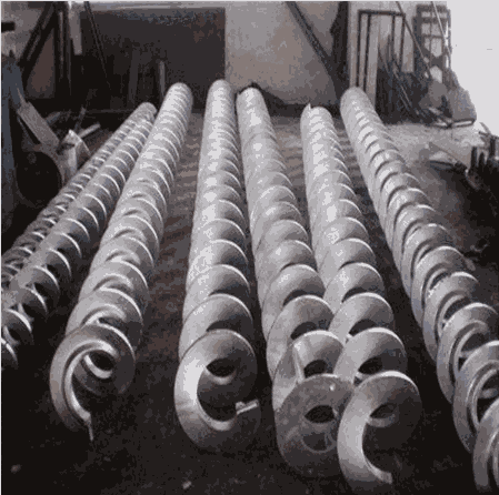 螺旋输送机是一种利用电机带动螺旋回转,推移物料以实现输送目的的机械。它能水平、倾斜或垂直输送,具有结构简单、横截面积小、密封性好、操作方便、维修容易、便于封闭运输等优点。螺旋输送机在输送形式上分为有轴螺旋输送机和无轴螺旋输送机两种,在外型上分为U型螺旋输送机管式螺旋输送机。有轴螺旋输送机适用于无粘性的干粉物料和小颗粒物料.(例如:水泥、粉煤灰、石灰、粮等)而无轴螺旋输送机适合输送机由粘性的和易缠绕的物料。(例如:污泥、生物质、垃圾等)螺旋输送机的工作原理是旋转的螺旋叶片物料推移而进行螺旋输送机输送,使物料不与螺旋输送机叶片一起旋转的力是物料自身重量和螺旋输送机机壳对物料的摩擦阻力。螺旋输送机旋转轴上焊的螺旋叶片,叶片的面型根据输送物料的不同有实体面型、带式面型、叶片面型等型式。螺旋输送机的螺旋轴在物料运动方向的终端有止推轴承以随物料给螺旋的轴向反力,在机长较长时,应加中间吊挂轴承。
