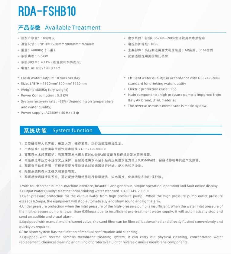 小型海水淡化设备 RDA-FSHB 10