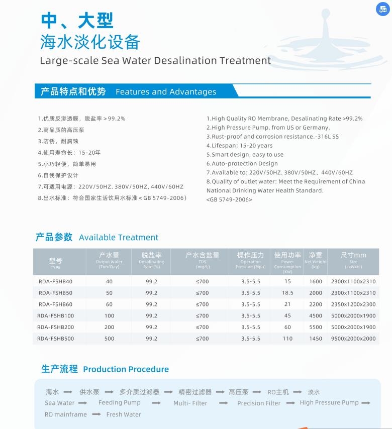 中型海水淡化设备 RDA-FSHB60