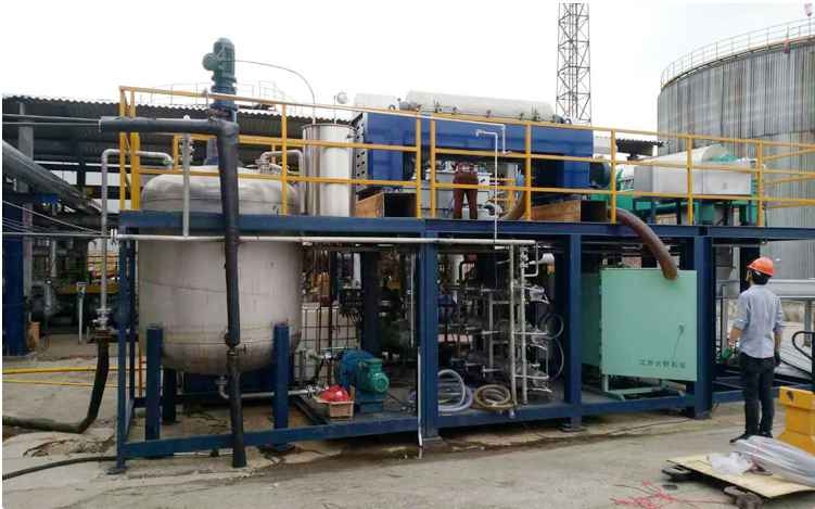 针对餐厨垃圾难处理的特点,瑞特环保选用具有自主知识产权的三相卧螺离心机进行分离,该卧螺离心机主要由柱-锥转鼓,螺旋卸料器、差速器、轴承座、机座、罩壳、主副电机及电气系统构成。在离心机高速旋转的强大离心力的作用下,使得物料进行充分的分离,并且机器可以24小时连续运行。主电机驱动离心机转鼓,联接在转鼓上的差速器通过行星齿轮差速原理实现转鼓与螺旋的转速差,从而实现油水分离及固形物的推料过程。离心机具有差转速自动控制功能,由于物料进料含固率可能会有波动,采用差转速控制系统是保证差转速稳定,达到泥饼干度恒定,液相清澈,使得分离效果处于状态。重相液与轻相液分别从重相液溢流口和轻相液溢流口压出,达到油、水、固三相分离的目的。