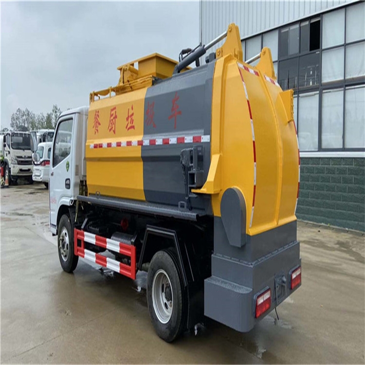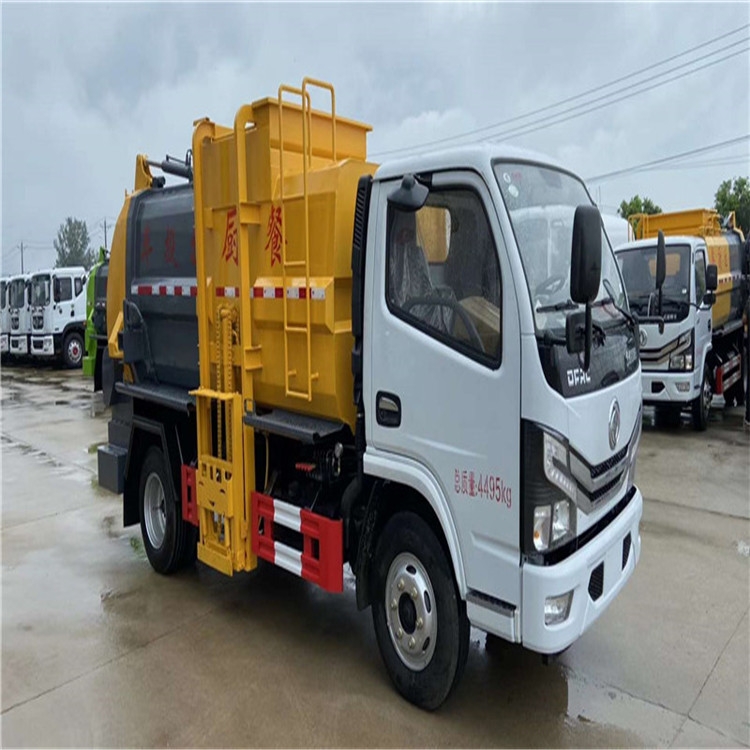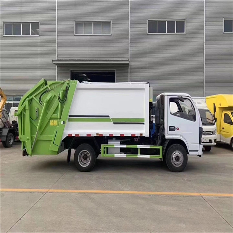 压缩对接式垃圾车工作原理和优点:该车操作是有液压控制来完成,控制可以为手动或电启控。压缩垃圾站在将垃圾压缩成块后将垃圾箱体垂直举起,并打开压缩箱门,这时垃圾车箱体后门向上开启,垃圾车后门与压缩箱后门对接,之后垃圾块被压缩箱内的推板水平推进到垃圾车箱4吨压缩垃圾车,完成垃圾装载后关闭垃圾车后门,将垃圾运到垃圾处理地进行倾卸;改垃圾车的收运是目前国内广泛采用的垃圾压缩站垃圾转运,可以实现一车多站,大大了配备成本和空间等等。其装置的功能均以汽车发动机为动力,通过液压机构手动或电控,气控来实现;车辆的箱体采用碳钢板全密封焊接结构,具有强度高,重量轻,不产生二次污染等优点