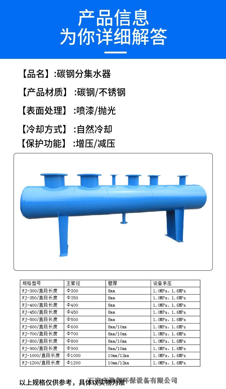 FJ-400厂家供应集气缸襄阳 水源热泵分集水器 碳钢卧式分气缸