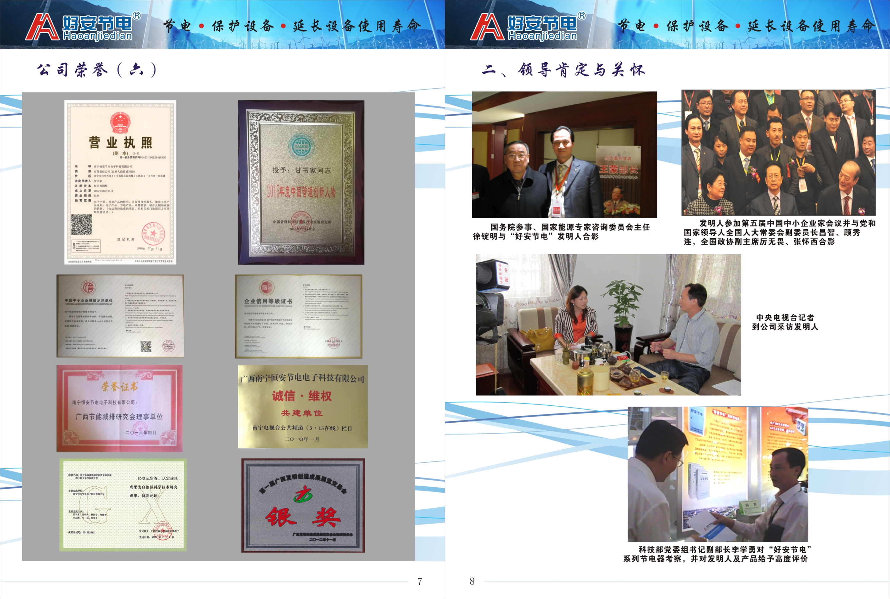 2007年起,南宁恒安节电电子科技有限公司打破了国内外节电行业的技术壁垒,公司将这种珍贵的节电核心数据进行周密的数字化设计,集合成可自动识别并自动调节电压的电网高效能优化智能分析软件,并向国家申请了技术,2007年国家总局正式批准了ZL200720079944.8/ZL2007 20082645.X两项。这一科研成果得到了时任国家党组书记、副部长李学勇及中央领导同志充分肯定。 同年好安节电系列节电器及我公司被评为中国能源战略高层论坛优秀科技创新项目中国节电器制造品牌中国节电器制造10强企业中国科技创新100强中小企业,发明人同时获得世界优秀发明家国家高级研究员称号。