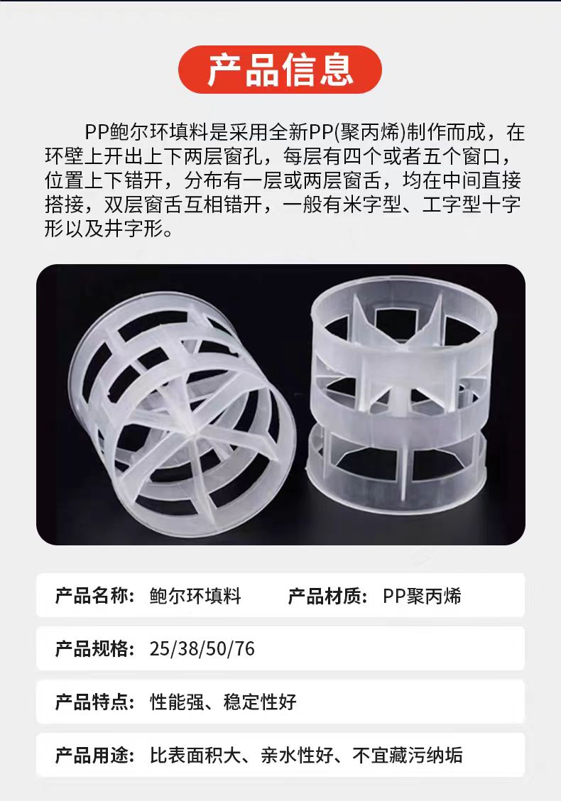 鲍尔环填料PP聚丙烯净化化喷淋塔脱硫塔废气净化气液分离填料脱硫