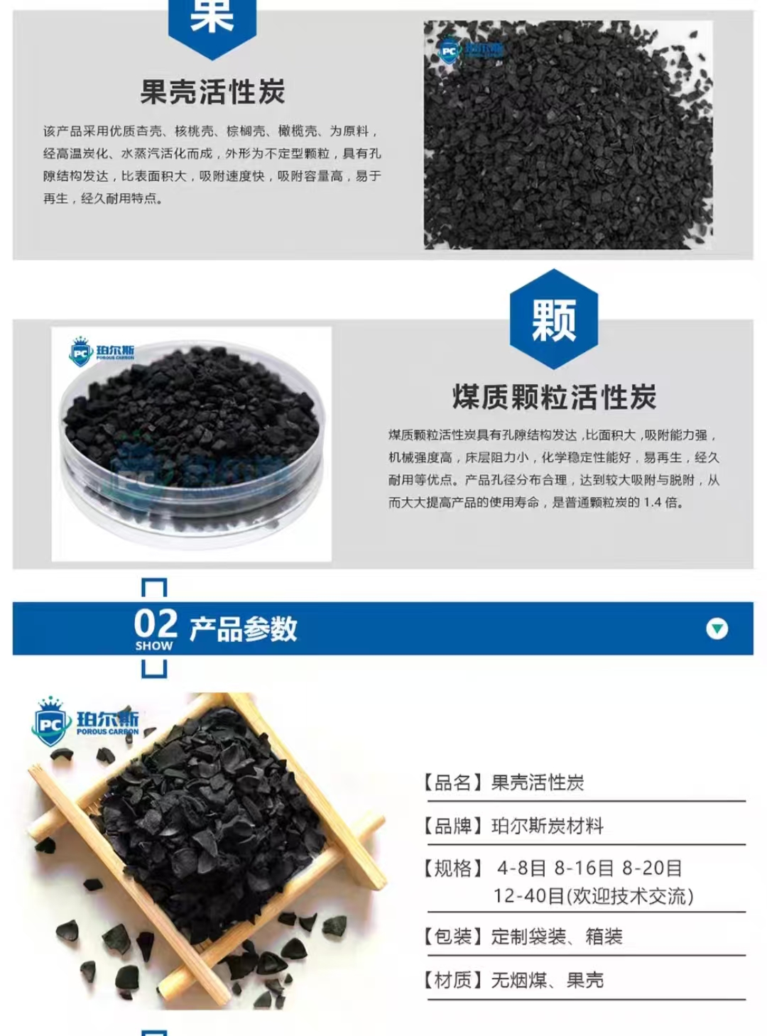 珀尔斯散装科研实验优质杏壳果壳炭颗粒出口活性炭超纯净水处理炭
