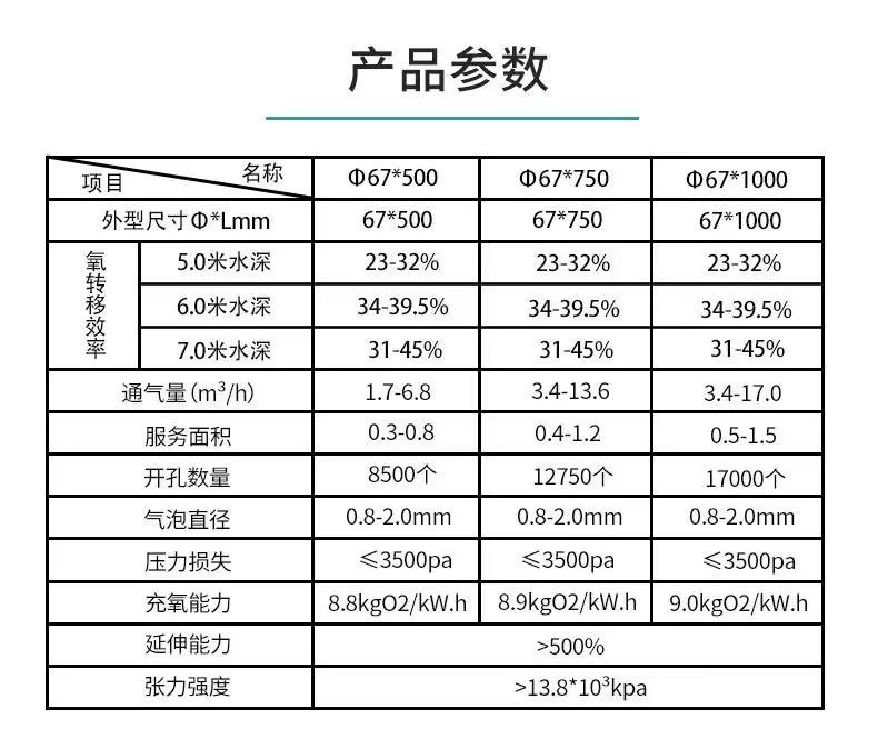 管式曝气器可提升曝气管EPDM硅胶TPU微孔膜皮ABS内管增氧污水处理