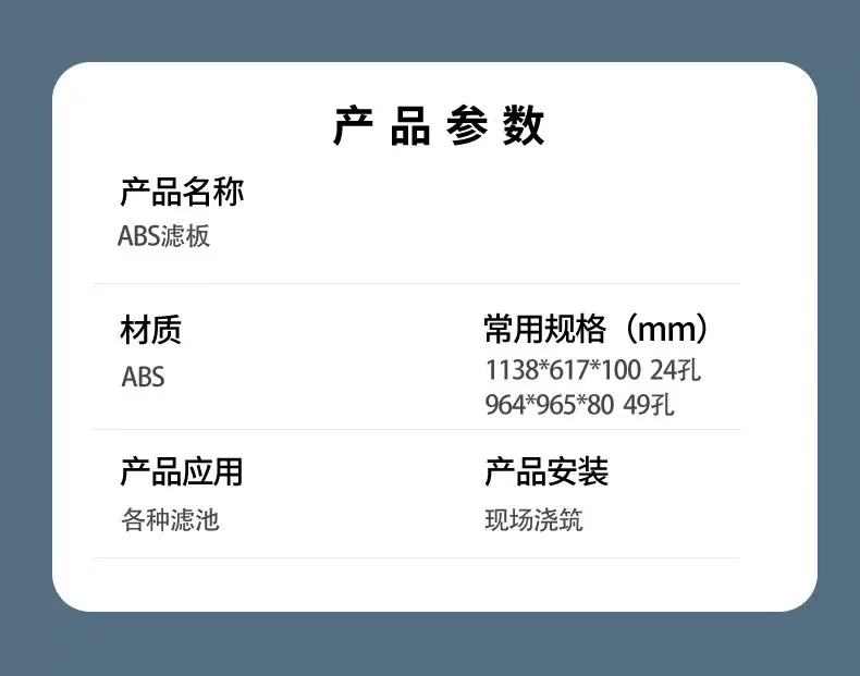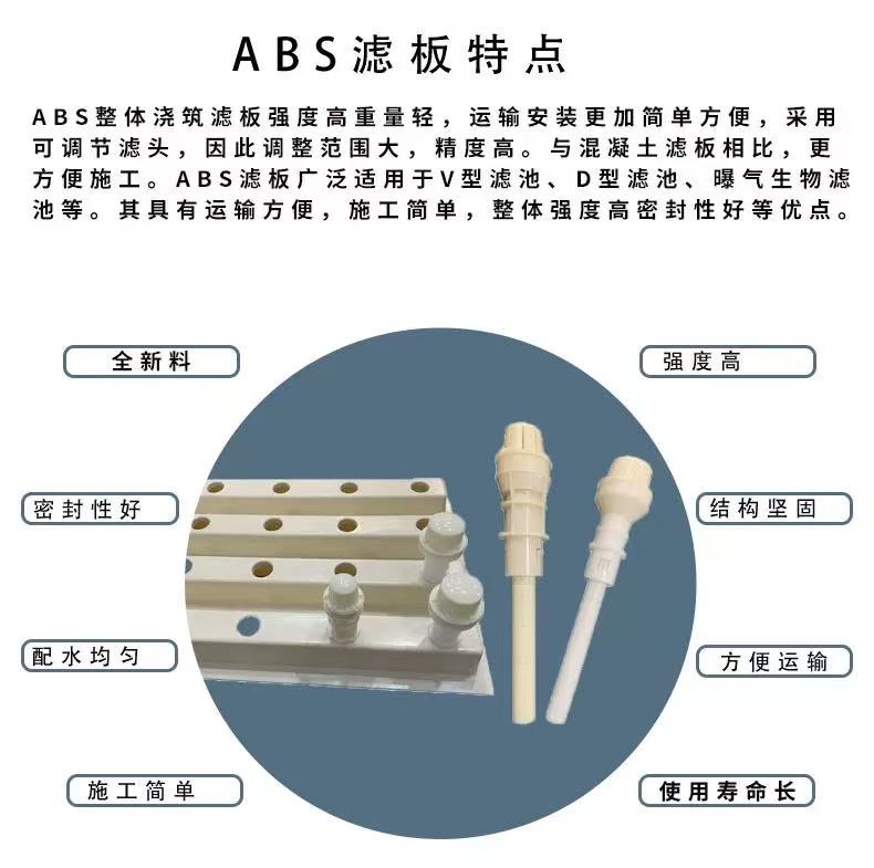 整体浇筑ABS滤板反冲洗生物滤池用滤板污水处理可调节滤板滤头