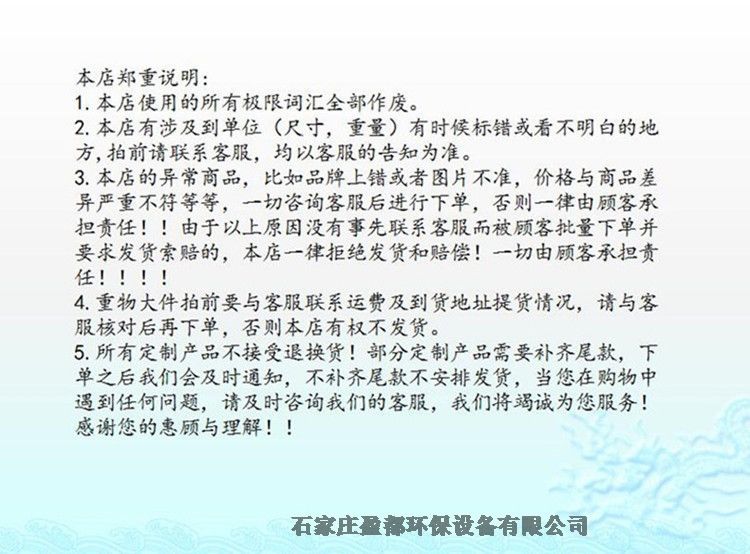 石家庄盈都环保设备有限公司 智能客服智能客服在线解答,若涉及资金打款事宜,务必与厂家进行电话确认。