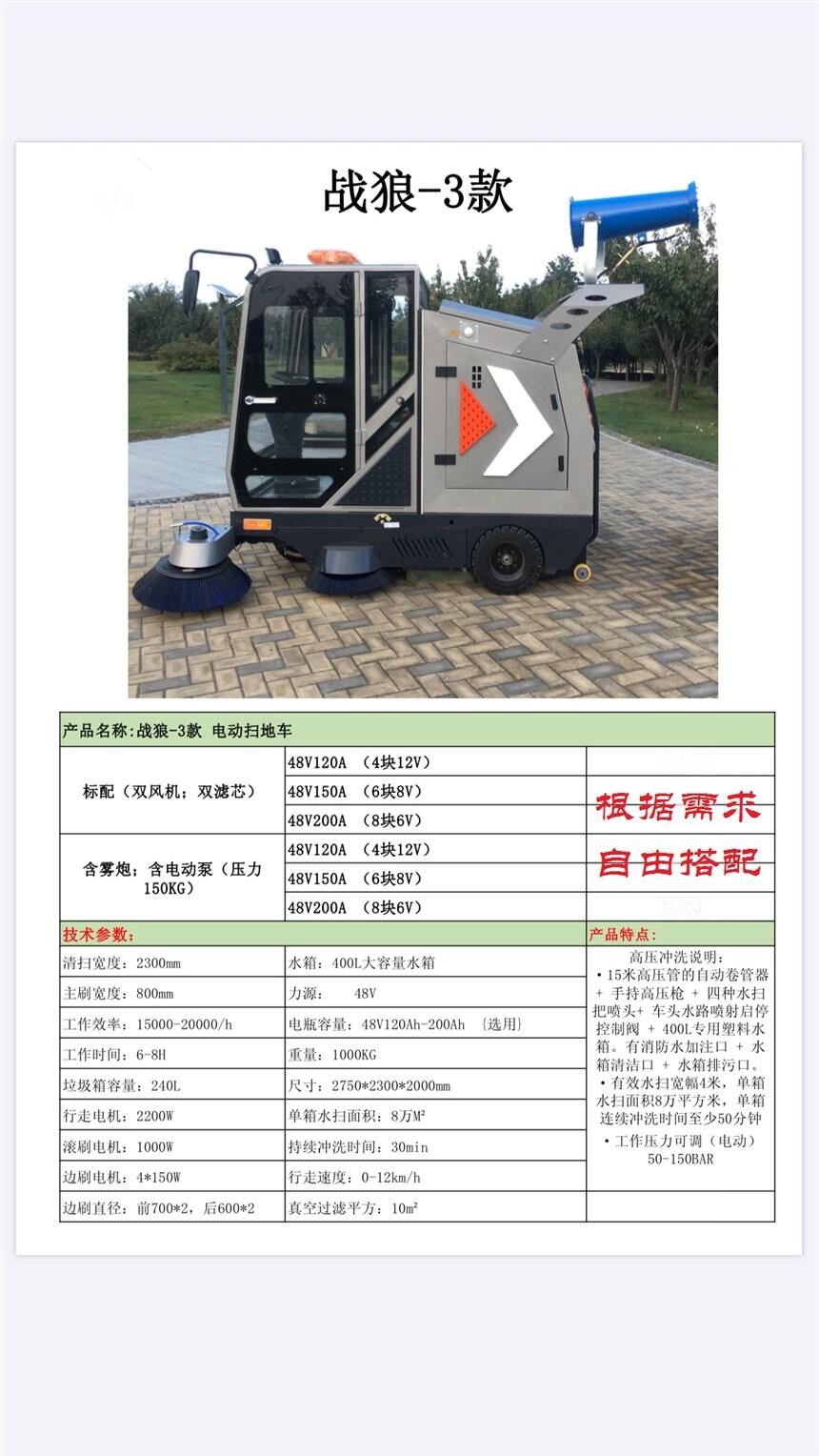 1.前后配有LED大灯及后尾作业提示灯,让夜晚清扫更明亮更便捷;前置喷水装置,液压减震,前后实心防扎轮胎;
