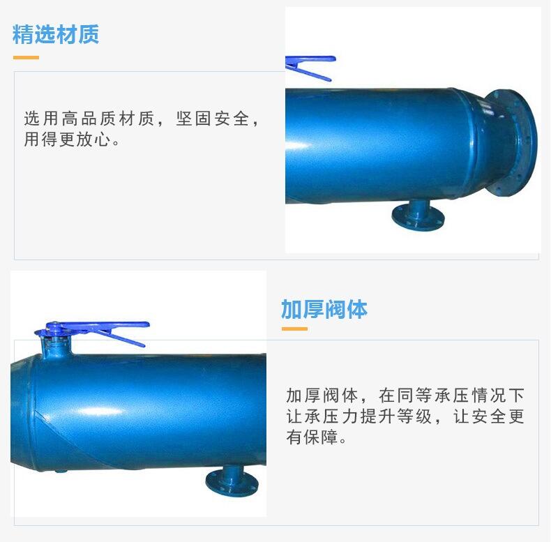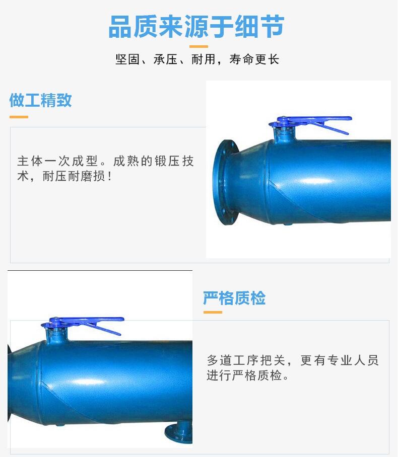 全自动反冲洗过滤器宜水平或垂直安装,当垂直安装时,水流方向应该是自上而下,安装时应注意外壳上箭头方向必须与水流一致,正常运行时,蝶阀处于开启状态,当需要排污时,关闭蝶阀,打开排污阀直到排出水质变清为止。关闭排污阀,开启蝶阀,即完成排污过程,设备进入正常运行状态。