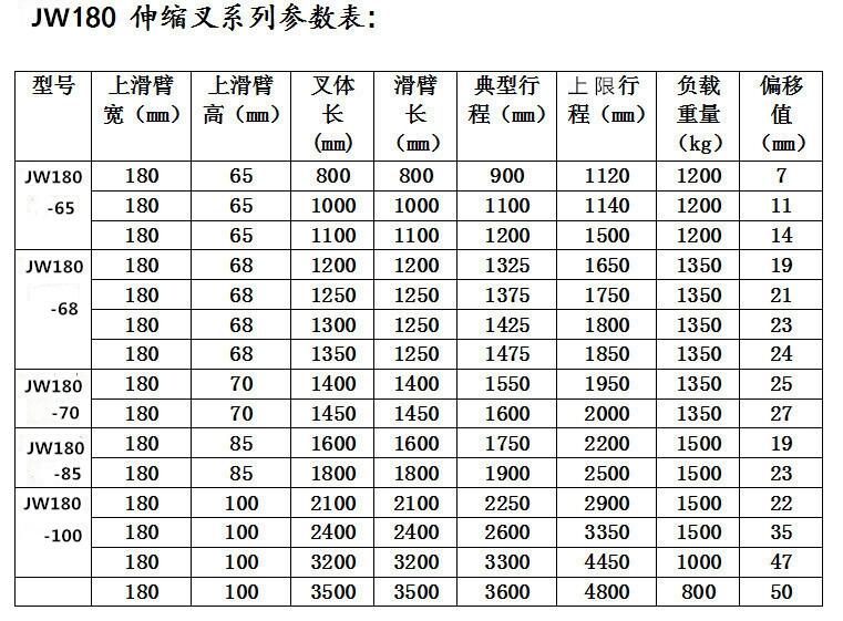 堆垛机伸缩叉一般都是根据用户的要求或提供的参数来进行设计定型的,每套伸缩叉的参数不同或载重不一样,其设计结构也稍有不同!所以现有型号只能作为参考,如典型的JW68系列、JW180系列、JW200系列、JW250系列、JW275系列等,都具有很普遍的通用现象,可作为选型时的参考!