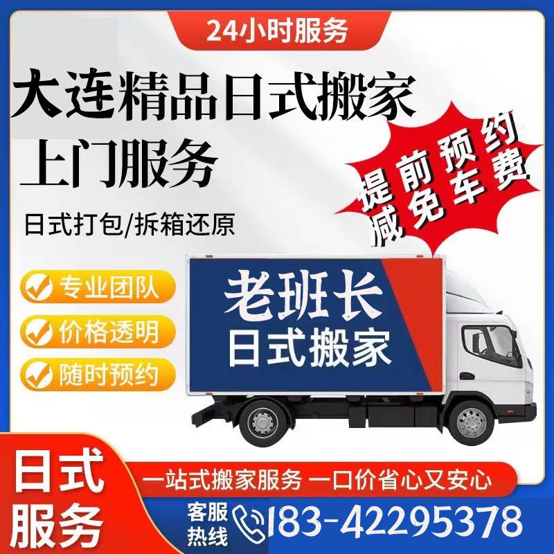 大连老班长搬家服务24小时营业:18342295378一站式高端搬家服务.中山区搬家公司、开发区搬家公司、西岗区搬家公司、甘井子区搬家公司、沙河口区搬家公司、高新园区搬家公司、金州区搬家公司、普兰店搬家公司.旅顺区搬家公司.集居民搬家、办公室搬迁、搬家货运、长短途运输、临时仓储、物品包装、拆装家具、计时工服务、钢琴搬运、重型设备迁移、空调移机