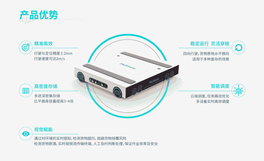 劢微机器人以智能四向穿梭车为主要硬件载体的高密集存储自动化立体仓库解决方案,将帮助企业限度利用土地资源,降低人工管理成本,助力仓储数字化经营。以立体仓库为主的智能仓储系统解决方案中,可实现从搬运到存取全流程高效作业,包括来料装卸、入库检测和出库拣选等物流场景,通过多种存储方式,满足货物高中低不同频次的存取需求,其高存储密度、高兼容性、高效率和高柔性的优势,正为制造企业解锁整场物流闭环的智能仓储新模式。