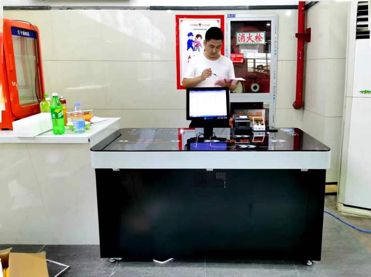 智慧餐台是智慧餐饮结算终端,通过全新的自助结算模式,实现整个餐厅从购餐到结算的高效、有序。长1500mm,宽700mm,高825mm的高度正好是双手放置托盘的位置。