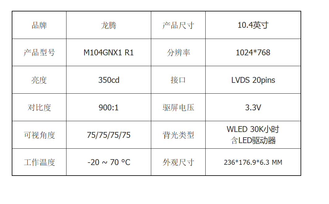 尺寸 | 10.4.英寸液晶显示屏 | ||