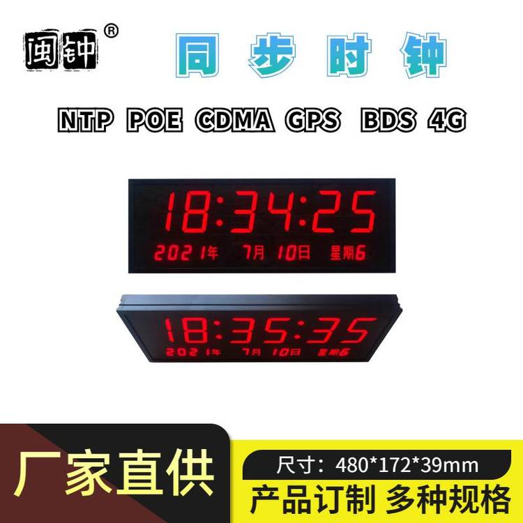 1、基于以太网(NTP)授时的电子钟,可获取NTP时间服务器时间,并以TCP/IP模式同步多个电子时钟,同步各个终端时间。