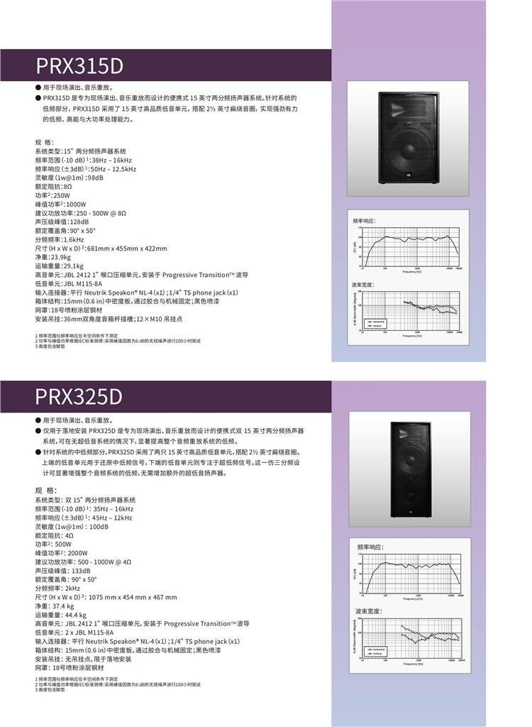 高音单元 | JBL 2412 1”喉口压缩单元,安装于Progressive TransitionTM波导 | ||