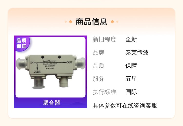耦合器TC-10400-20K频率特性好专业靠谱品质保障泰莱微波全新