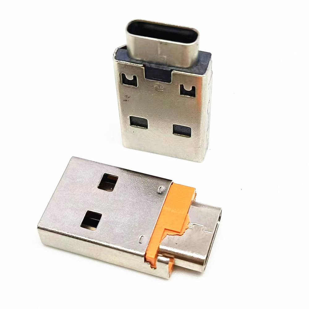OTG转接头 USB AM TO TYPE-C/F 一体式 L=21.0 高导铜3u 黑胶/橙胶 型号 | USB AM TO TYPE-C/F 一体式 L=21.0 | ||