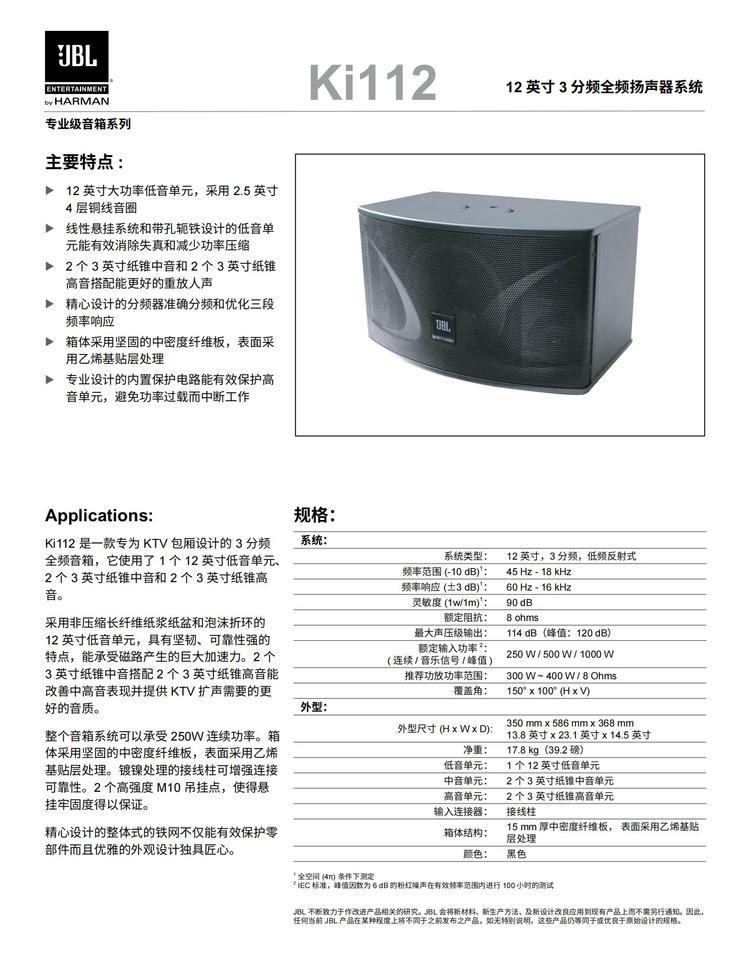 JBL KI112产品规格书