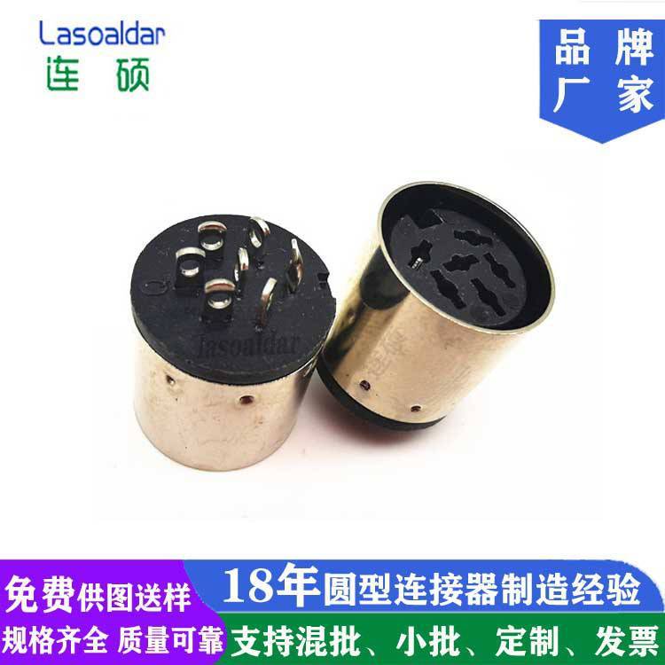 LASOALDAR连硕品牌厂家生产大DIN6PIN母插头实心车针六芯孔圆形母座DS端子焊线成型式连硕达