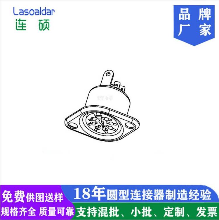 深圳厂家连硕达生产菱形270°度DIN8PIN母座焊线式八芯连接器用于医疗多功能美容仪器