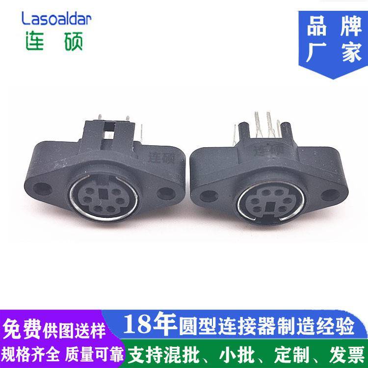 迷你型PS2插座DIN座MDC-6-09S端子4P4芯母座直插式带耳朵