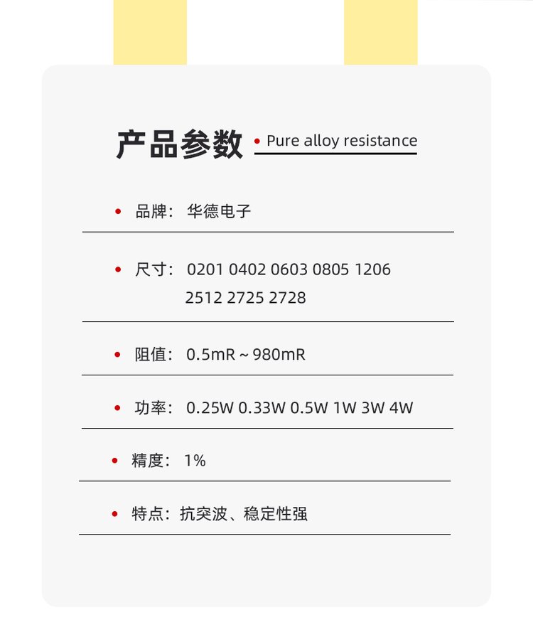 型号 | 华德10mR宽电极电阻 HTE2512M3W0R010F |