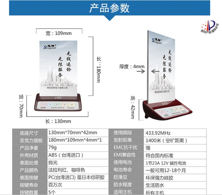 迅铃台卡无线餐厅专用多键呼叫器APE150
