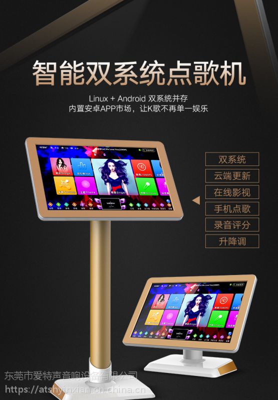 atsh/爱特声 kl-1900 家庭ktv触摸屏高清点歌机家用卡拉ok双系统