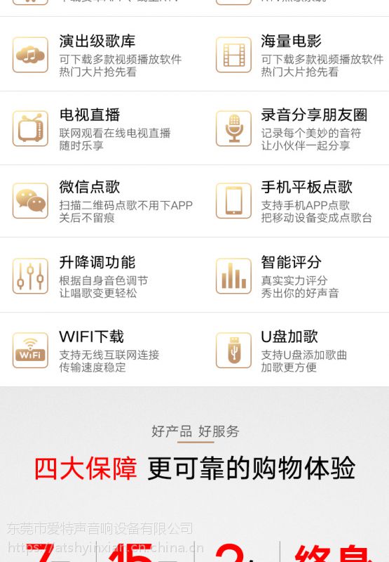 如何选择一套满意的ktv音响设备。想要唱歌效果好,无论是麦克风,前级效果器,后级功放,音箱,配套的配件附件,售后服务。缺一不可,整体设备的选择很重要,并不只是听个响而已,不是图片做的好看,价格标的很低,把原本就是配套的赠品搞的很夸张来吸引客户,好像占了很大的便宜,所以请广大消费者要擦亮双眼细心选择。