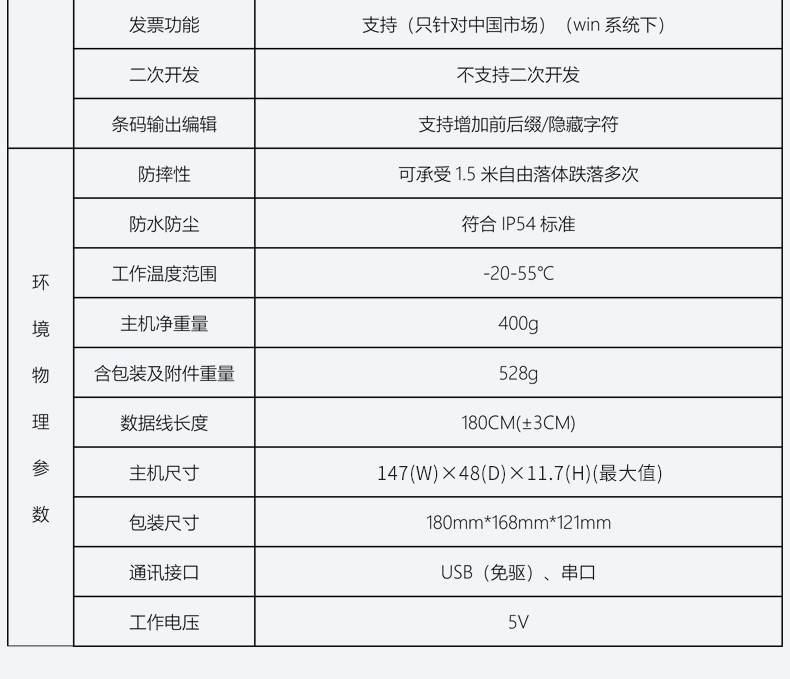 采用全钽电容及抗氧化光学工艺,避免了传统扫描枪使用一段时间后灵敏度下降问题。