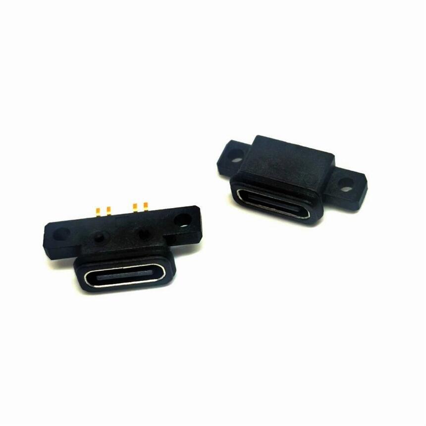TYPE-C 4P贴片式防水母座 双耳带螺丝孔有柱 USB3.1防水插座 IPX7