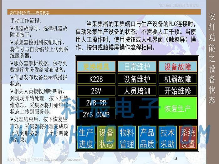 武汉科辰电子科技有限公司专业生产电子看板,生产看板,工业参数看板,工业参数采集器,工业参数显示屏,工业参数显示器,温湿度屏,日历温湿度屏,正负计时看板,酒店宾馆电子价格牌,油价牌,电子看板管理系统(JIT系统)。 我公司生产电子看板能与PLC组态软件MODBUS OPC直接通讯,可用遥控器扩展功能,按照客户要求订制,具有脱机和联网两种使用方式,性能稳定,功能强大。
