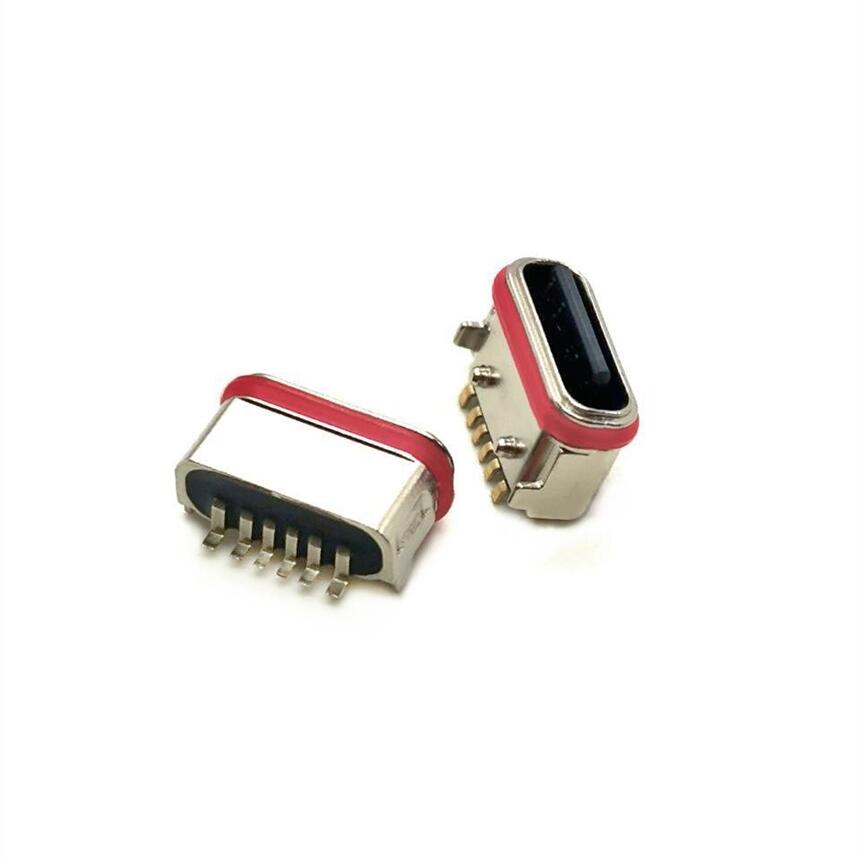 TYPE-C 6PIN板上型防水母座 后两脚带柱 粉末冶金 IPX7 外露胶芯