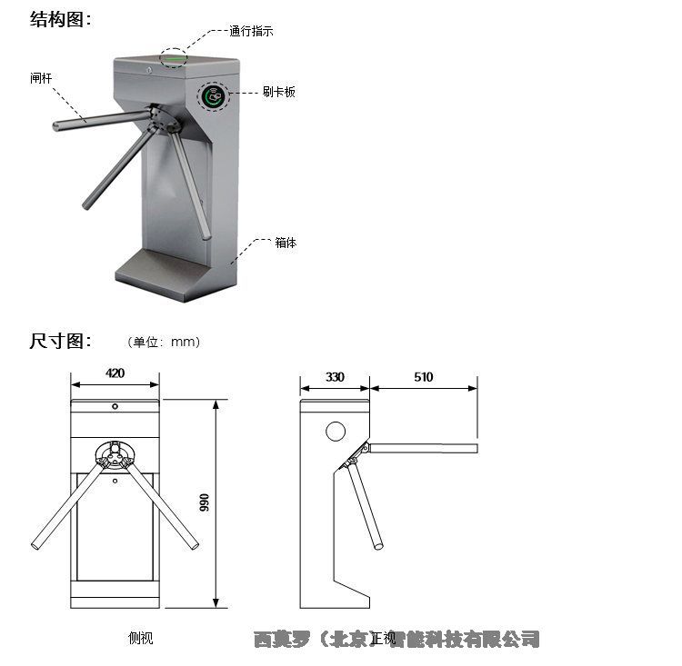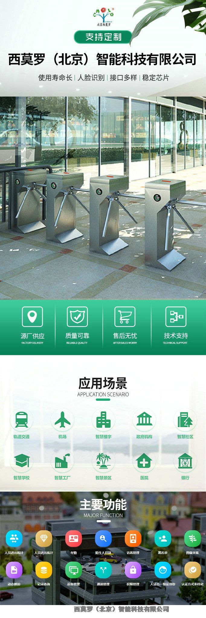 西莫罗智能立式三辊闸门禁系统主要用于办公楼、膝拗钱、学校、景区、工厂出入口等场景。