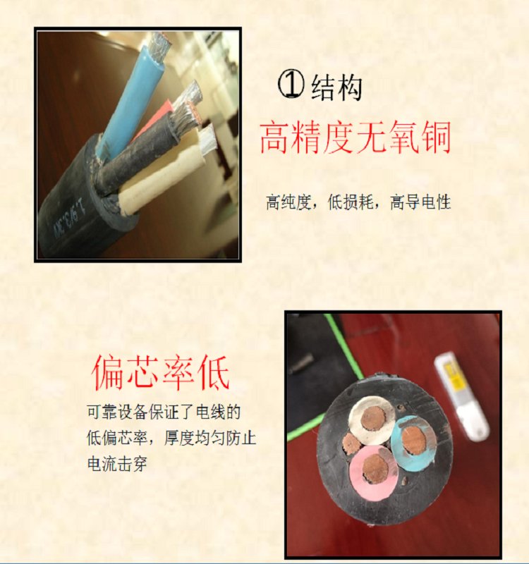 通用橡套电缆适用于可移动的电气装备、电动工具、仪器和日用电器作电源作用;适用费微光,是橡套软电缆中产量、应用面的一类产品。它采用细直径铜单线多股束合、复绞成导线后挤包橡皮绝缘层,多股绞合成揽,再挤包橡皮护套、。