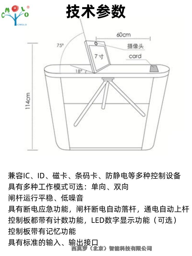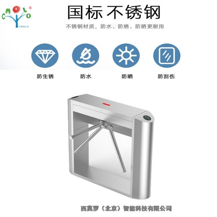 西莫罗桥式考勤三辊闸门禁系统主要用于景区、工地、公园、工厂出入口等场景。