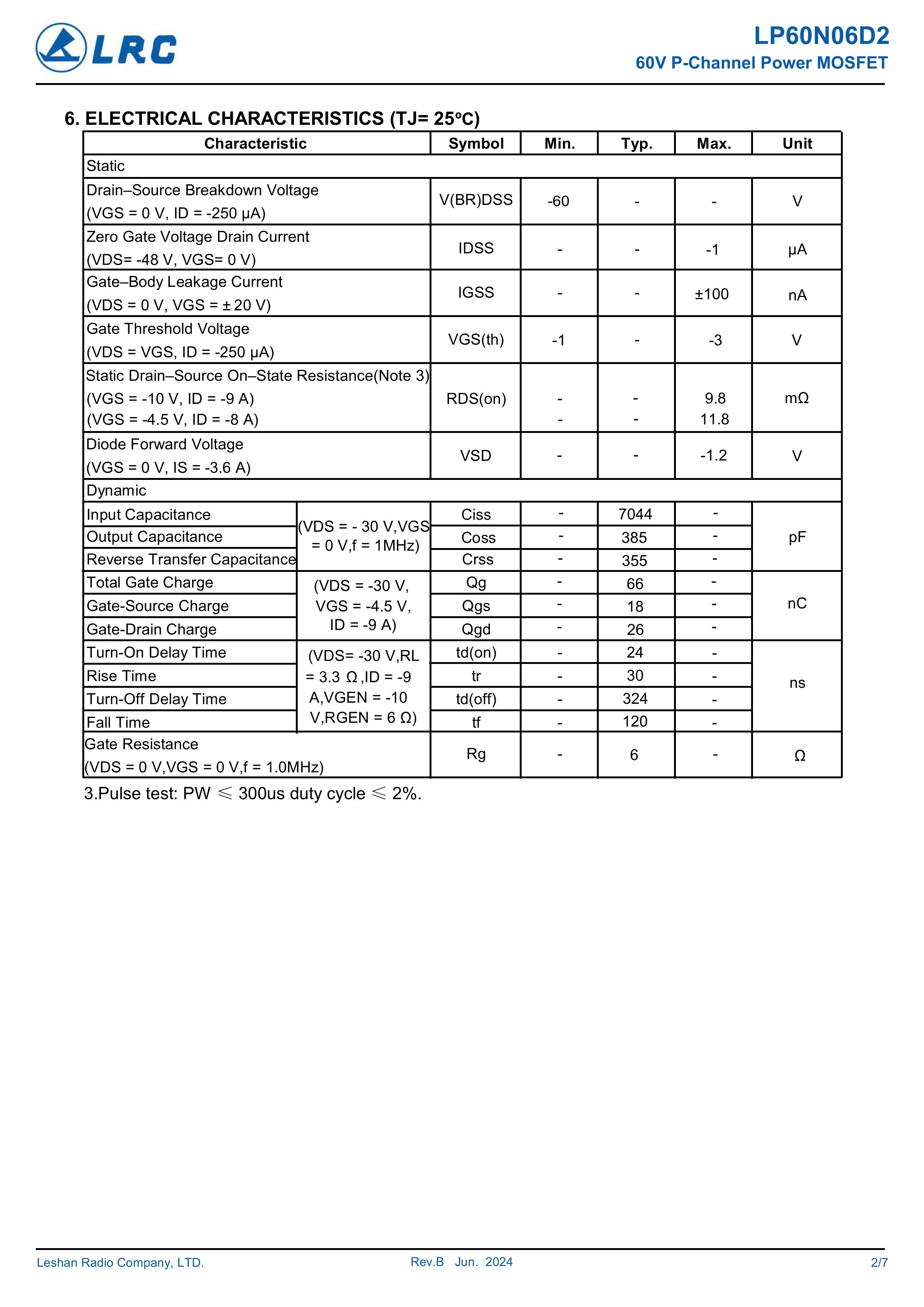 LRC/乐山无线电 LP60N06D2 全新原厂原装中低压高频功率控制电子开关管,P型沟道场效应管-60V、-59A、9.8mΩ、P-Channel、贴片式中低压MOSFET:LP60N06D2/P60N06D2。Vds电压:-60V;Id电流:-59A;Rds(on)内阻:9.8mΩ;封装方式:TO-252-2L;最小包装数量:2500pcs/盘-编带。