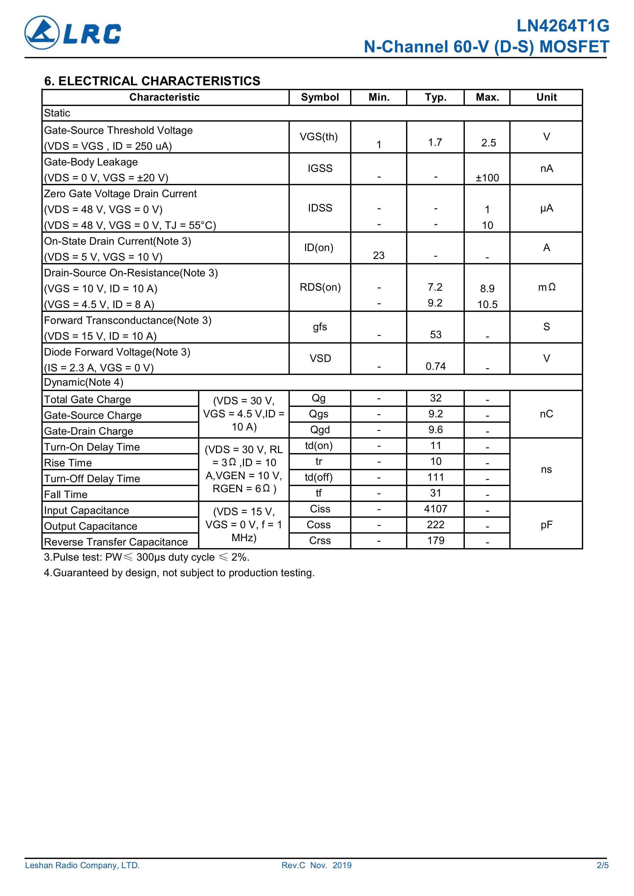 LN4264T1G/LN4264 大芯片中低电压大电流低内阻低漏电的分立式功率整流晶体开关管。本品采用内置大尺寸芯片,漏极3脚位源极4脚位,支持多路输入 输出贴片式封装,,具有适应中低电压低内阻损耗高频高效恢复快等电气特性特点。通用于电源、小家电、锂电池、马达电机、电动工具、无人机、电器、适配器、充电器、逆变器、充电桩、特种电源、高频电源、风光储新能源、医疗设备、工业工控等产品电路作电子开关、控制、整流、放大、钳位、防反接、防逆回流等作用。