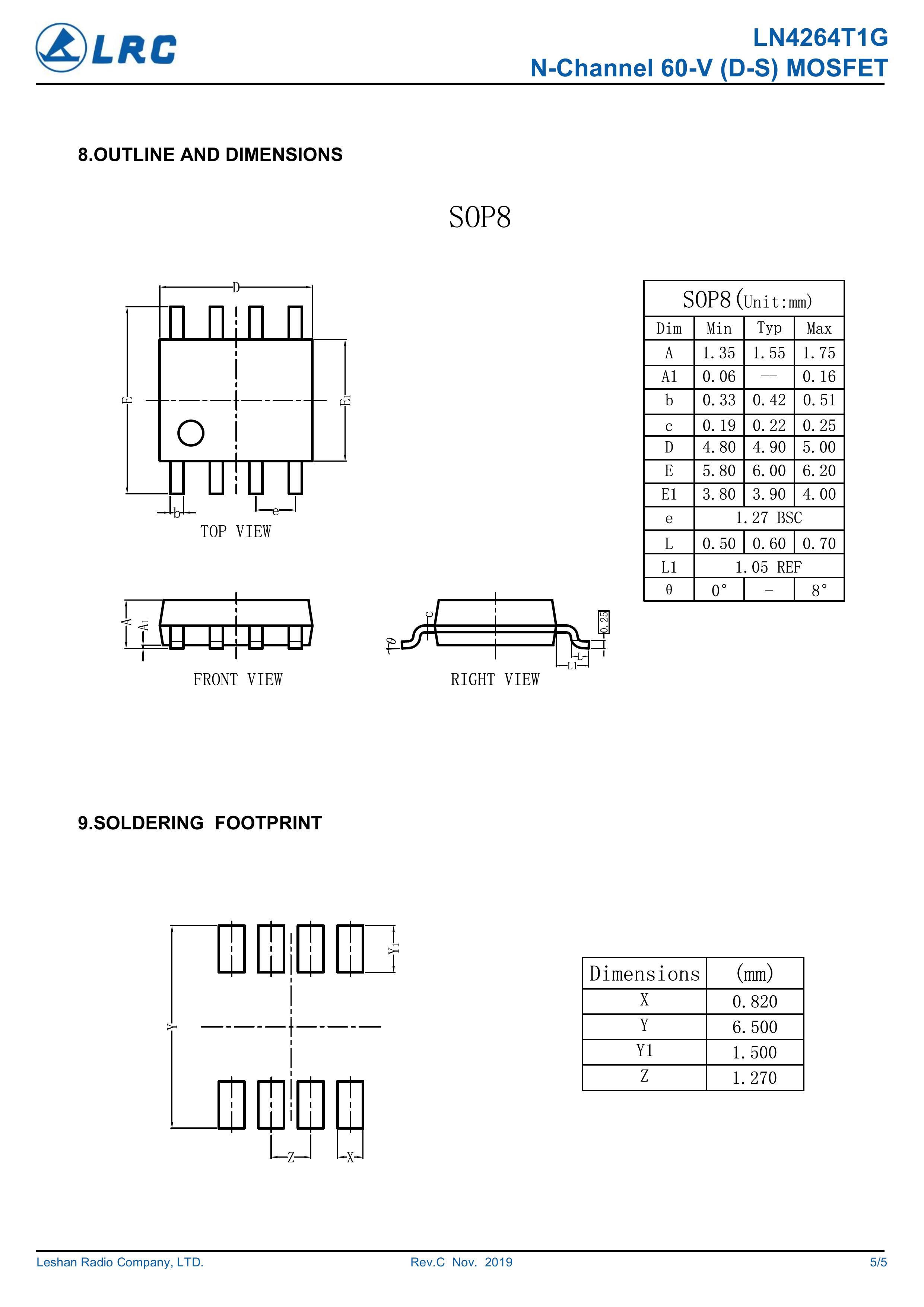 LRC/乐山无线电 LN4264T1G/LN4264 全新原厂原装中低压高频分立功率器件电子开关场效应管,多路源极漏极N型沟道场管60V、15A、10.5mΩ、N-Channel、贴片式中低压MOSFET: LN4264T1G/LN4264。Vds电压:60V;Id电流:15A;Rds(on)内阻:10.5mΩ;封装方式:SOP-8;最小包装数量:4000pcs/盘-编带。