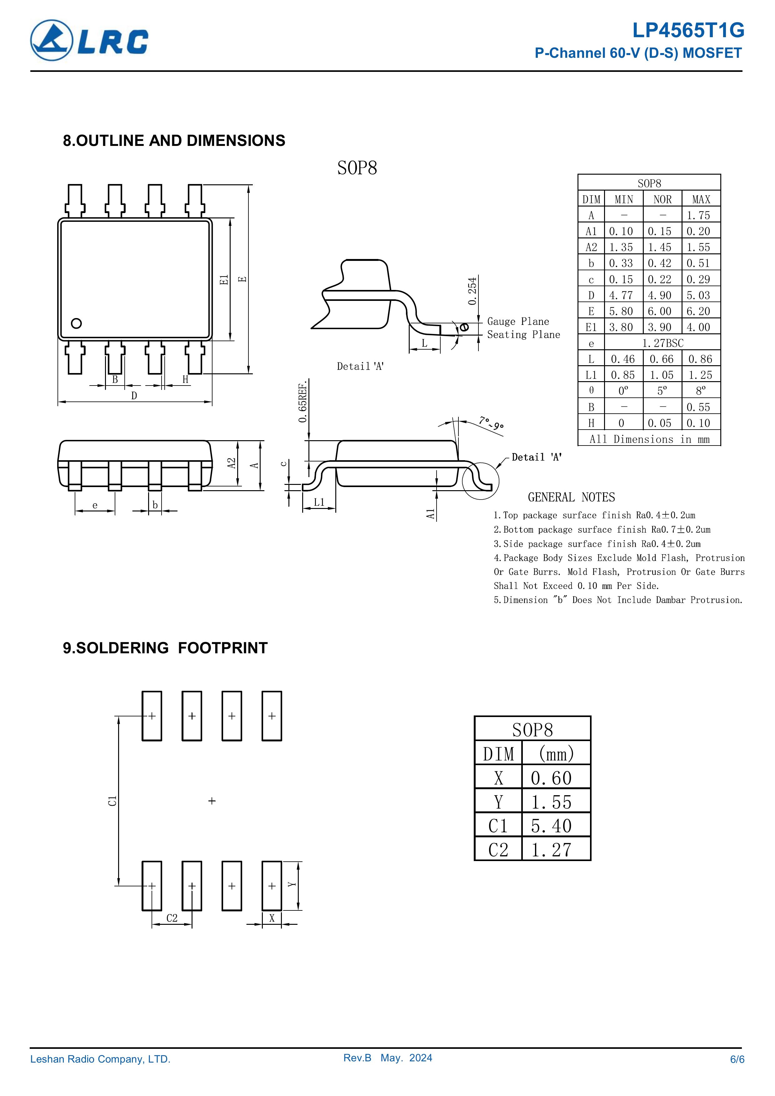 LRC/乐山无线电 LP4565T1G/LP4565 全新原厂原装中低压高频分立式功率器件电子开关场效应管,P型沟道场效应管负电压-60V、-7A、82mΩ、P-Channel、贴片式中低压MOSFET: LP4565T1G/LP4565。Vds电压:-60V;Id电流:-7A;Rds(on)内阻:82mΩ;封装方式:SOP-8;最小包装数量:4000pcs/盘-编带。