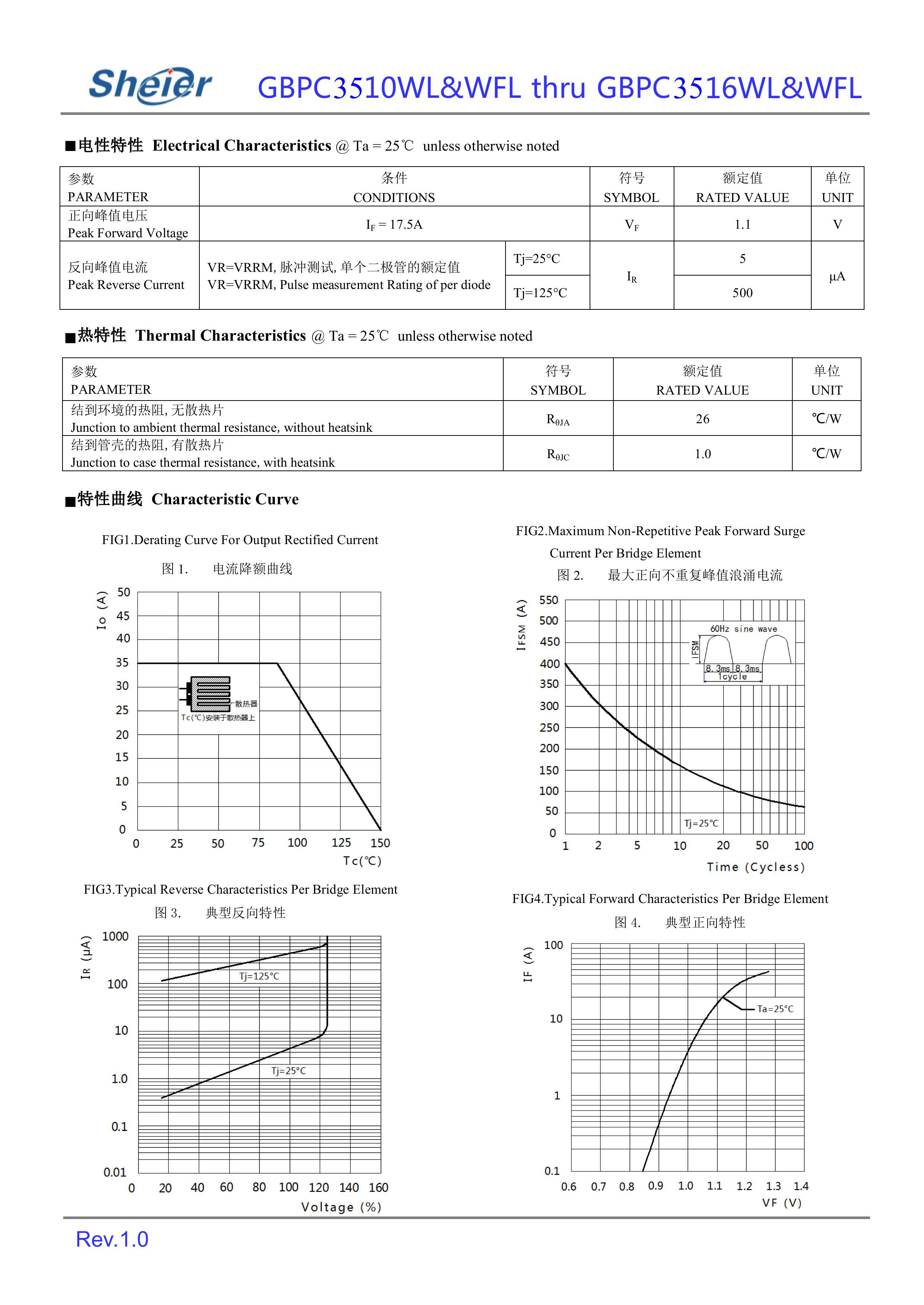 sheier/乐山希尔 GBPC3516WL/GBPC3512WL/GBPC3510WL 全新原厂原装高压大电流分立式功率整流器件整流桥,1600V~600V、35A、单排针脚式方形桥堆:GBPC3516WL/GBPC3512WL/GBPC3510WL。正向整流电流:35A;反向峰值电压:1600V~600V;;正向压降VF:1.1V;封装方式:GBPC-WL&WFL针脚式;最小包装数量:100pcs/盒。