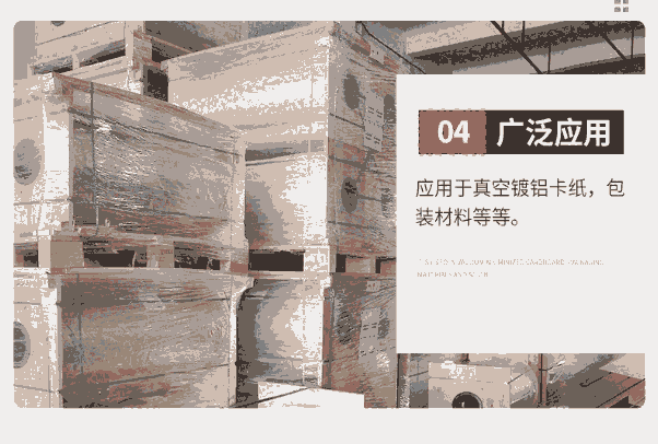产品应用:应用于真空镀铝卡纸,包装材料等等。