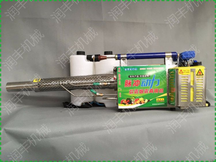 配比方法:先将扩散剂与柴油按1:15的比例进行勾兑(柴油用量占药箱总容量的10-20%),烟雾的浓度按加水量与柴油用量比例进行调节,加入10%药箱容量的农药,加入70-80%药箱容量的水,调和均匀后使用。四川新款弥雾机|四川喷雾弥雾机型号(必看)四川新款弥雾机|四川喷雾弥雾机型号(必看) 烟雾水雾两用弥雾机,机器药箱加入烟雾助剂(或柴油)喷出来的烟雾,加入烟雾剂越多烟雾量越大,烟雾打药快,扩散面积广!不加入烟雾剂直接使用兑好的药液打药,喷出来的水雾。水雾会受到温度和湿度的影响,水雾最适宜的打药时间是早晨和傍晚。温度越低,湿度越大,水雾的雾化效果就越好!阴云天气及日出前后打药水雾的雾化效果最佳!