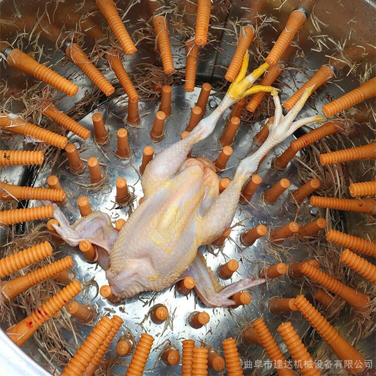 快速脱购毛机是曲阜市建达机械技术人员根据国内外家禽加工褪毛自动化生产工艺,结合我国的实际需求而精心研制的专门用于狗、鸡鸭等家禽的自动拔毛。本机结构简单,经久耐用,操作方便,十分适合广大家禽加工专业户、烤鸡、烤鸭作坊、饭店、宾馆和机关学校食堂等单位使用,有效的解脱了千百年来家禽杀后手工拔毛又脏又累的艰苦劳动,一台机器相当于十个人的手工拔毛,同时可除净狗鸡鸭表皮毛孔的细毛及一切污垢,简单方便,干净利索。选用此机确是您勤劳致富的理想设备.