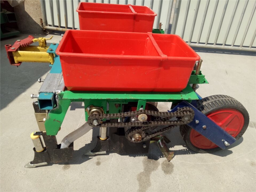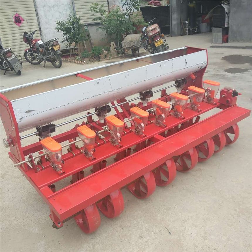 机器功能:本机器具有其他机器没有的精播器,可调种子的株距(1米内可以调1-6株)还可调节下种量1-6粒随意控制,可以适应不同的农作物种植方式。如:花生 大豆 红豆 绿豆 玉米 谷子 水稻 棉花籽 豌豆等颗粒状物料不同控制下种量、株距等达到各种粮食的播种需求!