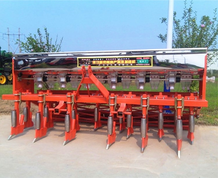 【工作效率】:手推型:单机一人8—10亩日;单机二人10—15亩日;拖拉机、小四轮、手扶、微耕机等动力,每垄或每行单机一日播种15—18亩。七行配置一日播种100—120亩左右。