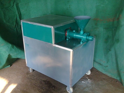 切粒部分,切粒大小由出粒孔而定,要想彭化一般4.5公分,孔子开4-5个,要想产量高,不彭化可开10-15个孔,小电机可前后调整,刀在顺向,下料时先用3-5市斤饲料加多水做起头。