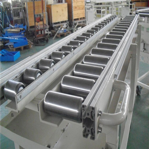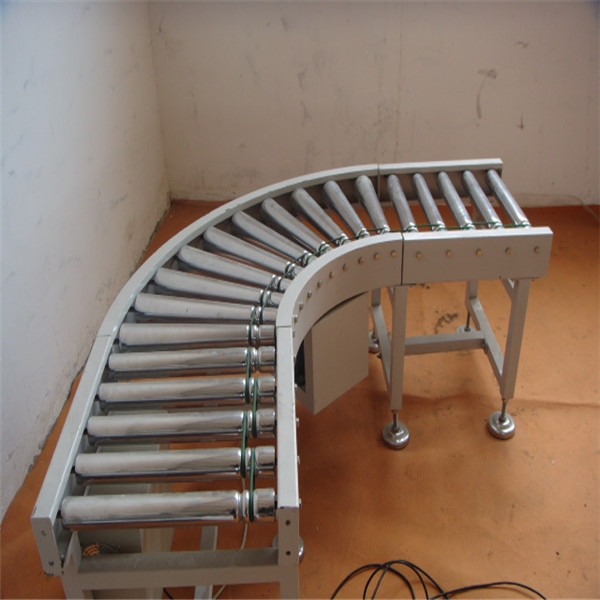 无动力滚筒输送机又称辊道输送机。有长辊道和短辊道两种。长辊道的辊子表面形状有圆柱形、圆锥形和曲面形几种,以圆柱形长辊道应用最广。辊道的曲线段采用圆锥形辊子或双排圆柱形辊子,可使物品转弯。短辊道可以缩短辊子的间距,自重较轻。辊道一般稍下倾,当物品较重、线路较长时,为了推动物品时省力,斜度可取1~1.5%。如要使物品自滑,斜度可增大到2~3%。影响自滑斜度大小的因素很多,大多用实验确定合适的角度。当线路长度小于10米、物品轻于 200千克时,可以布置成水平线路。自滑式辊道不易控制物品下滑速度,所以长度一般不大。辊道的宽度比物品宽度大100~150毫米。曲线段最小曲率半径为辊道宽度的3~4倍。辊子间距为输送物品长度的1/3~1/4,当物品输送的平稳性要求较高时。间距可取输送物品长度的1/4~1/5。辊子直径按载荷大小决定。